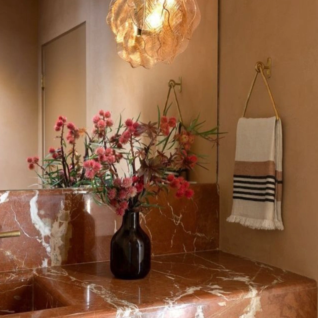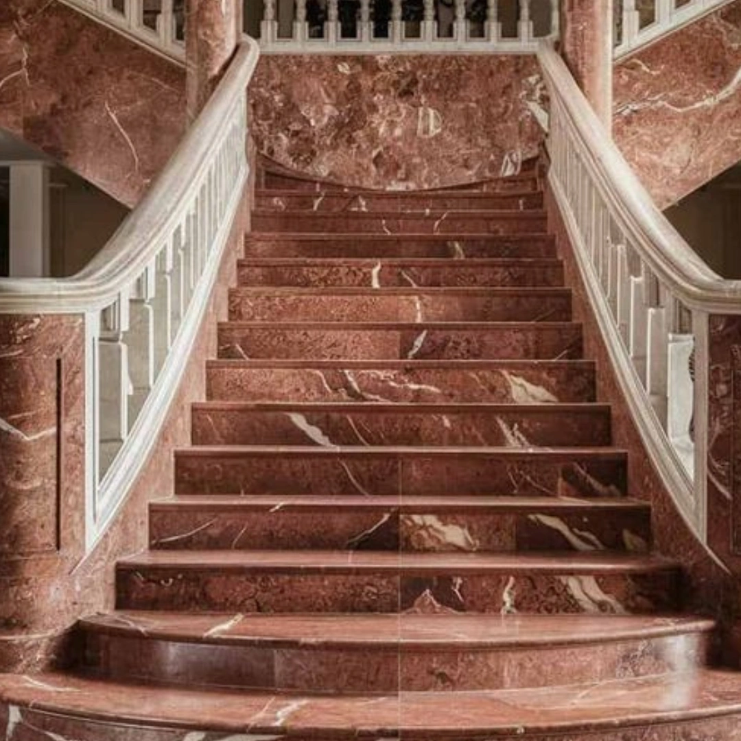 is a vibrant natural stone with deep red tones and subtle white veining.