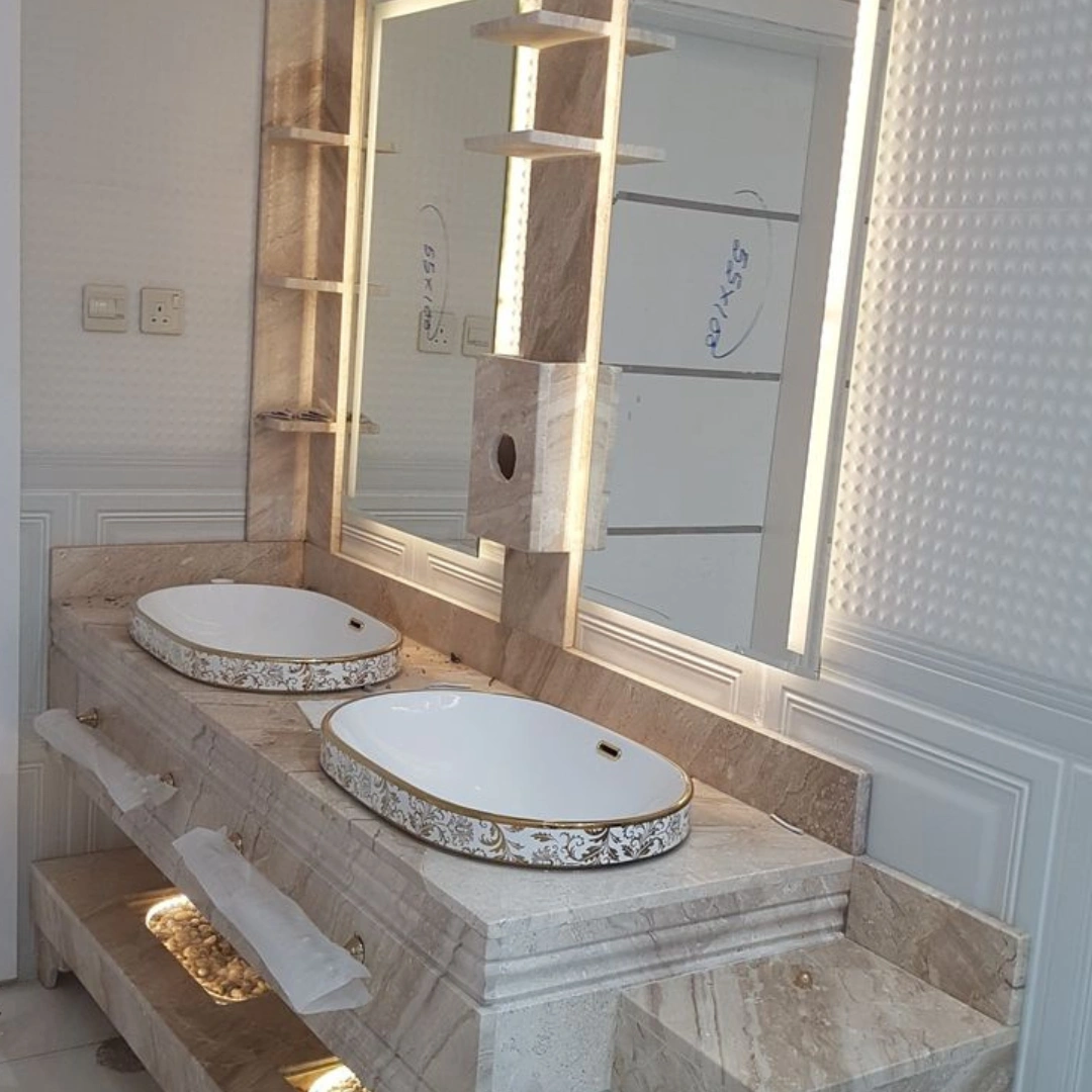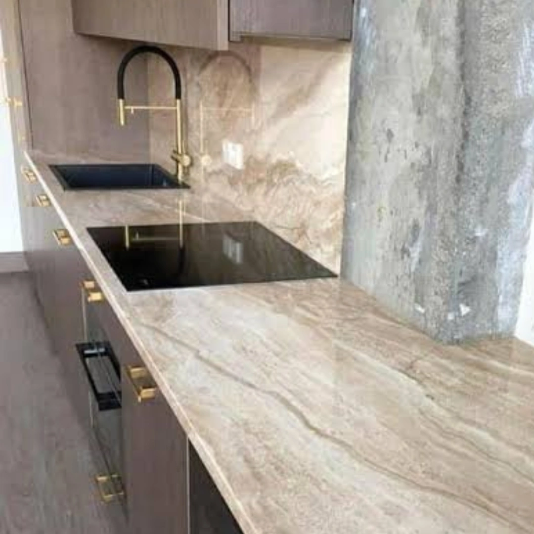 is a classic and elegant natural marble quarried in Italy, renowned for its warm beige background enriched with soft brown, cream, and light grey brecciated patterns. Its distinctive fragmented veining gives the stone depth, movement, and a timeless Mediterranean character.
