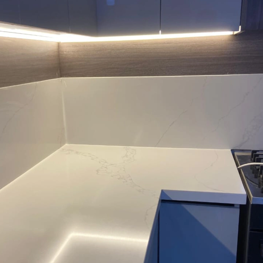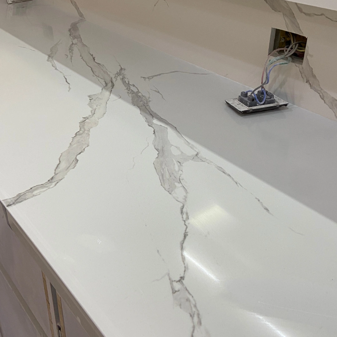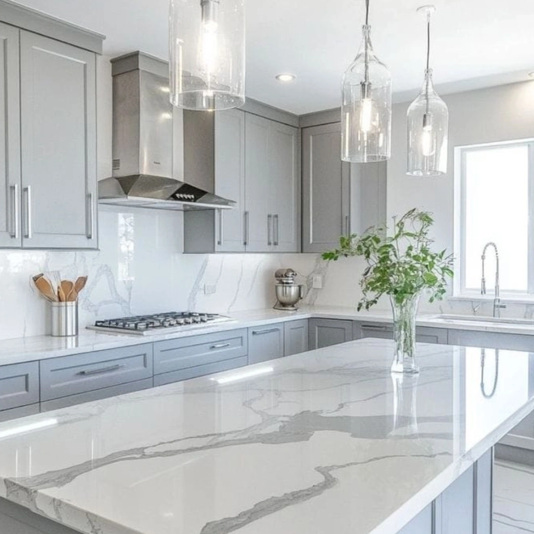 Elegant white quartz with soft grey veining and subtle shimmer.