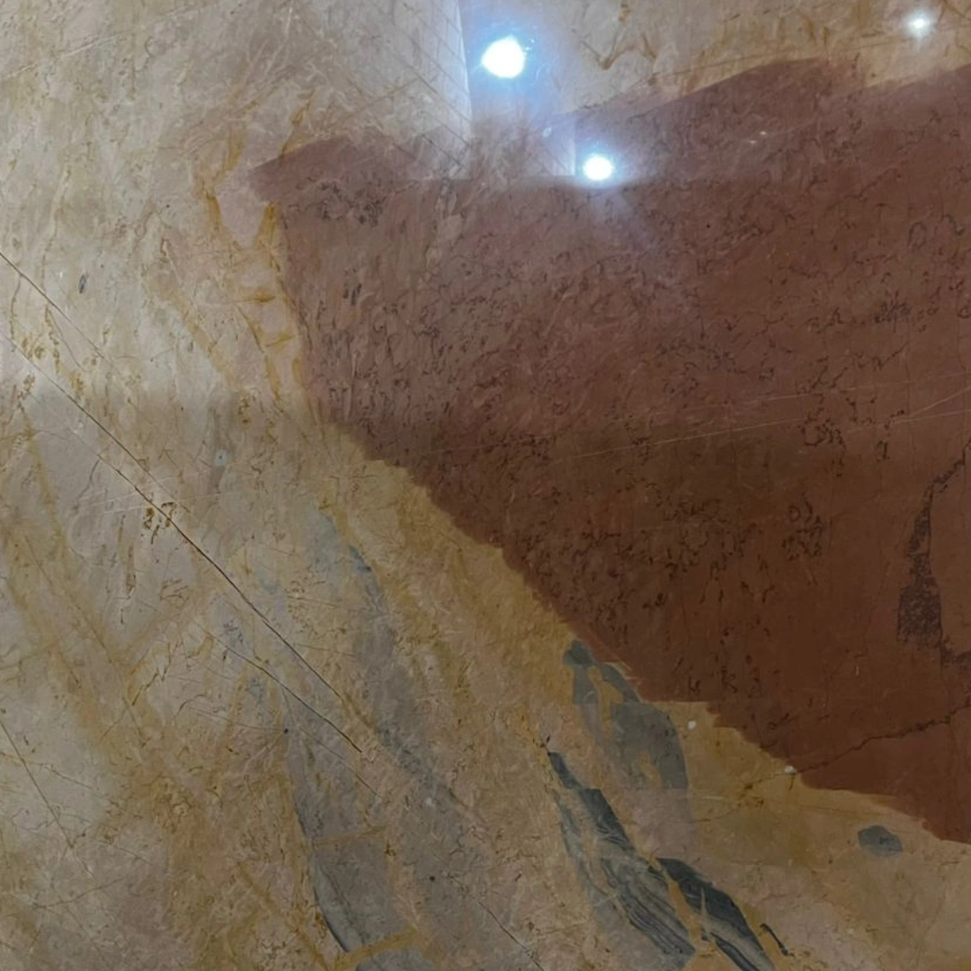 Warm marble with rich orange, golden, and beige tones.